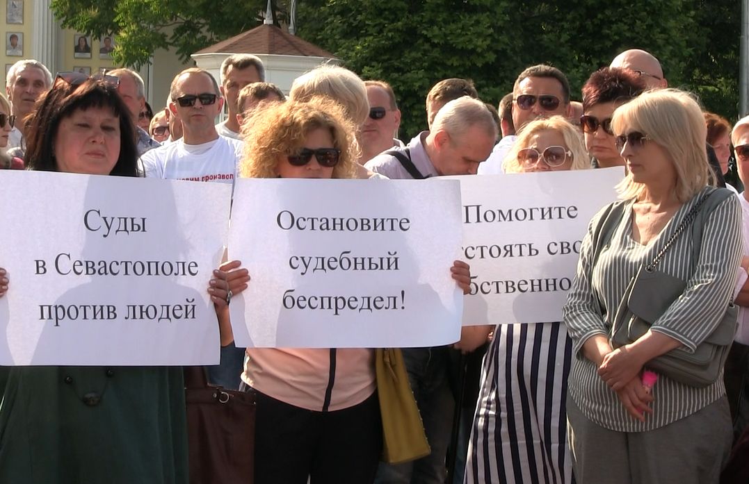 Учасники мітингу тримали плакати "Закзбори (окупаційний "парламент" міста, колишня Севастопольська міськрада – ред.) й уряд Севастополя – у відставку!", "В Україні напрацював, у Росії – віджимають!", "Суди в Севастополі – проти людей", "Зупинити судове свавілля!", "Допоможіть відстояти власність!" та іншими.