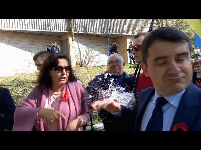 В Слов'янську (Донецька область) 9 травня під час маршу Миру в честь Дня перемоги над фашизмом почалися заворушення. Кілька радикалів облили зеленкою і обсипали борошном депутата "Опозиційного блоку" Наталію Королевську, а мера міста Володимира Ляха облили водою.