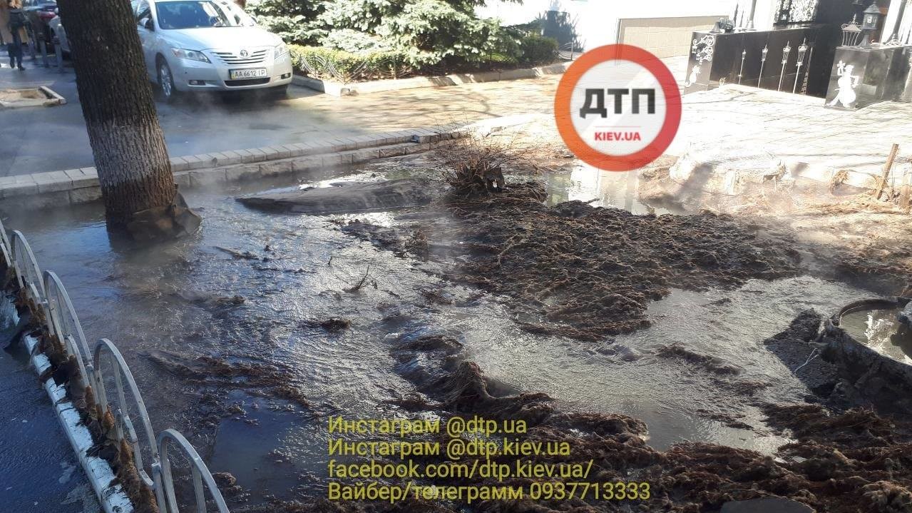 Раніше цього ж дня на вулиці Ділова внаслідок прориву труби дорогу залило окропом, в результаті на проїжджій частині розмило частину асфальту, а в утворену яму потрапив позашляховик Mitsubishi.