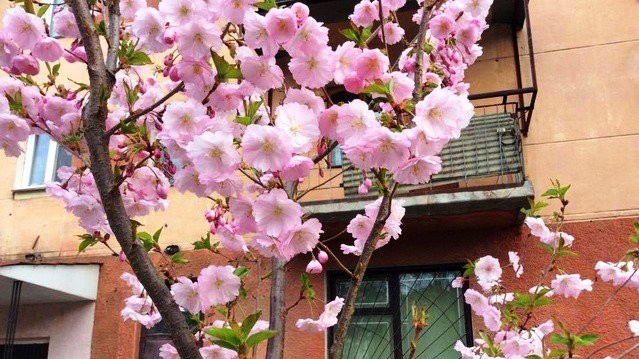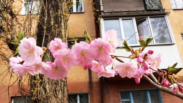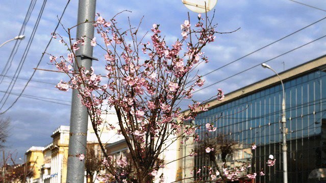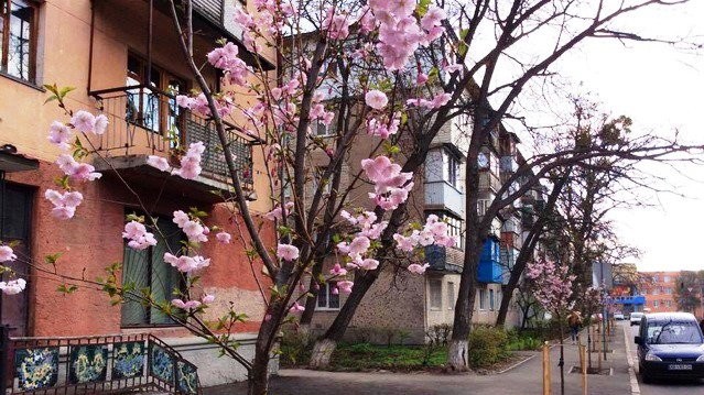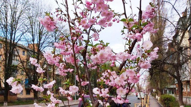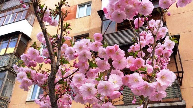 З приходом теплої погоди у Вінниці розквітли екзотичні дерева – японські сакури. У рожеву алею перетворилася вулиця Порика – на ній зацвіло близько 30 сакур. А перед мерією з дев'яти дерев поки розпустилися тільки три.