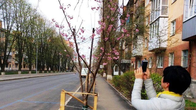 За останній рік у Вінниці з'явилися відразу кілька "куточків Японії". Перші сакури в місті посадили на Європейській площі, біля Башти – в пам'ять героїв, які віддали життя за Україну. Потім - на Вишеньці, вздовж вулиці Порика, далі – на Майдані Незалежності. Ці дерева мають крони традиційної форми – гілки спрямовані вгору, а біля нового фонтану на проспекті Космонавтів з'явилися "плакучі" сакури, які спускають гілки вниз.