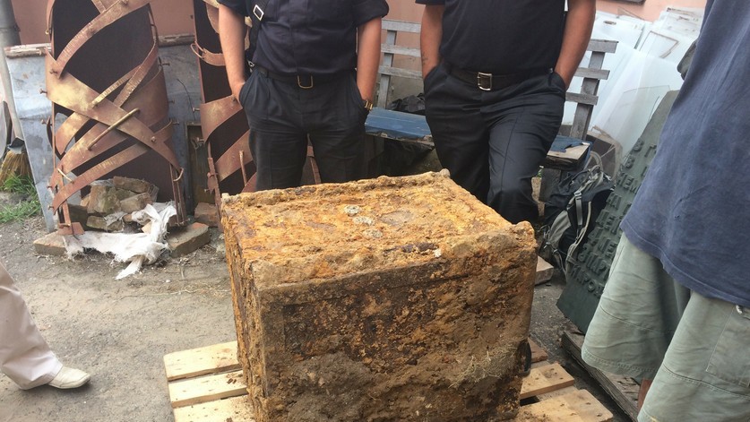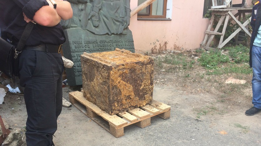 – Така знахідка – справді рідкісна, на моїй пам'яті це перший німецький сейф, знайдений у Вінниці, – продовжує Ольга Грабовська. Відкрити його у "штатний" спосіб не вийде – час зробив свою справу, метал дуже окислився. Будемо застосовувати спеціальні інструменти, аби мінімально пошкодити сейф, позаяк і він сам по собі являє історичну цінність. Предмет увесь покритий іржею та землею: спочатку його мають максимально ретельно почистити і потім взятися до відкриття. На дверцятах сейфу видно три шифрові замки зі збереженими літерами.