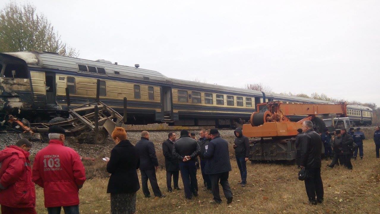 Наголошується, що в результаті зіткнення в кабіні поїзда почалася пожежа, яку на даний момент повністю ліквідовано. Ведуться роботи по передислокації залізничного складу.