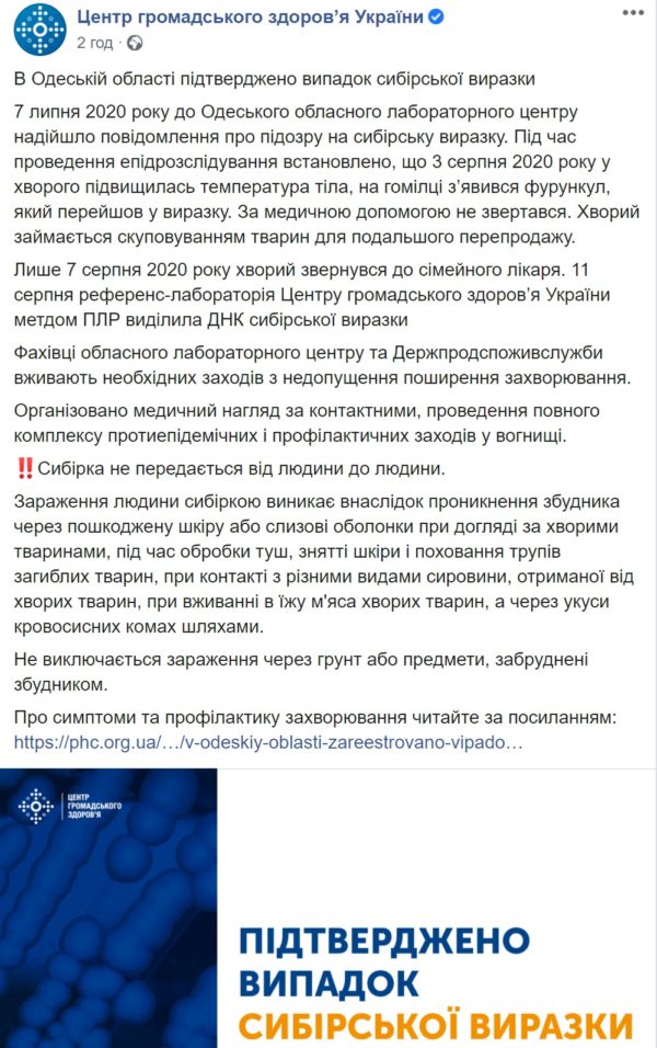 Сибірська виразка не поширена в Україні. Але масові спалахи медики припускають.