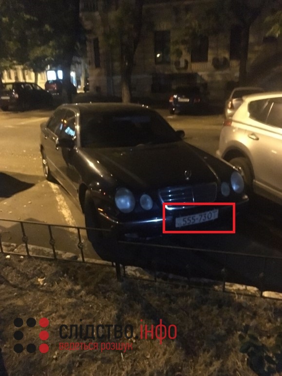 Mercedes-Benz такого кольору і з такими номерними знаками зареєстрований на дружину Руслана Форостяка, який під час нападу на Стерненка ще працював поліції радником очільника одеського главку поліції Дмитра Головіна – нині підозрюваного у корупції. Є ця автівка і в декларації Форостяка.