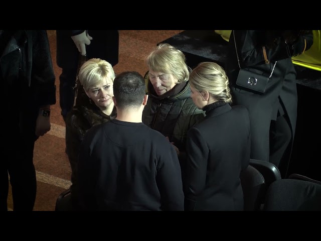 Президент України Володимир Зеленський та перша леді Олена Зеленська взяли участь у церемонії прощання з керівництвом МВС, яке трагічно загинуло 18 січня під час аварії вертольота у Броварах.