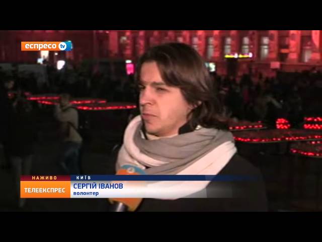 У Харкові, Києві, Миколаєві, Рівному та інших містах України ввечері активісти виклали запаленими свічками герб України і заспівали гімн.