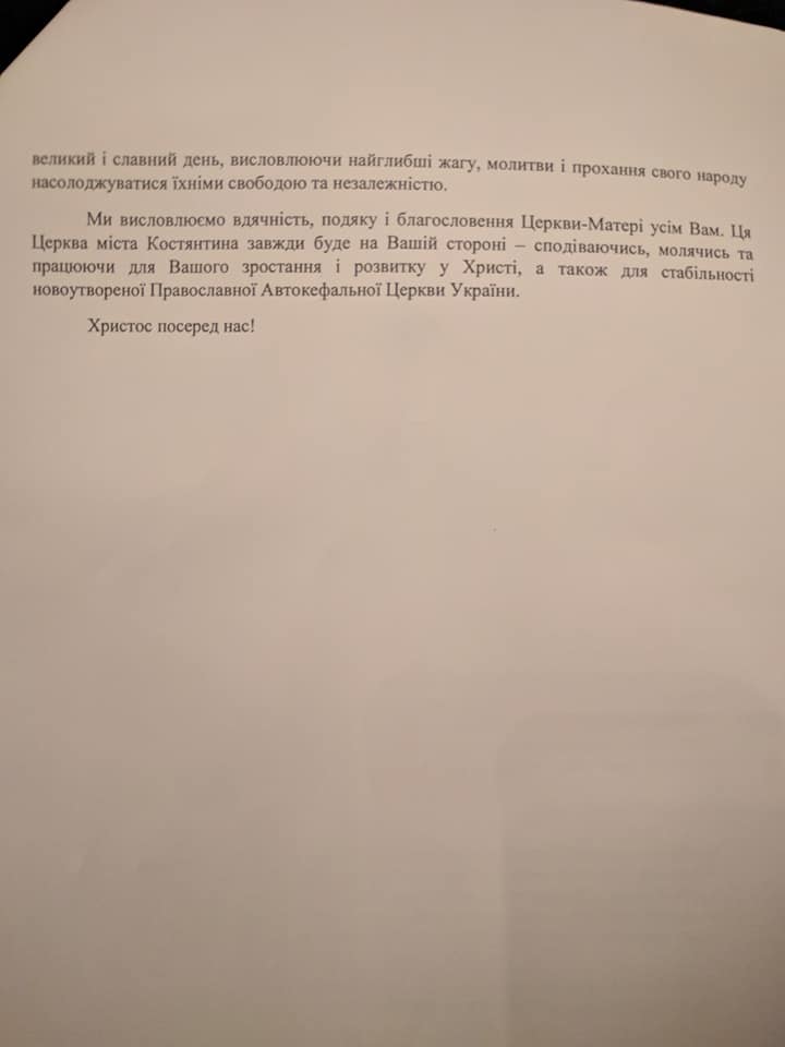 "Наша церква-дочка ніколи не забуватиме того, що дала нам Церква-Мати. Ніколи не припинимо возносити за вас наші молитви до Бога", - сказав він. Епіфаній промовляв також й грецькою мовою.