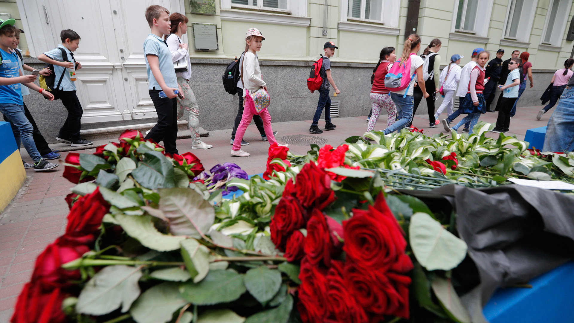 Коло будинку посольства Великобританії у Києві з'явилися букети квітів на знак солідарності з людьми, які стали жертвами вчорашнього терористичного акту у Манчестері.