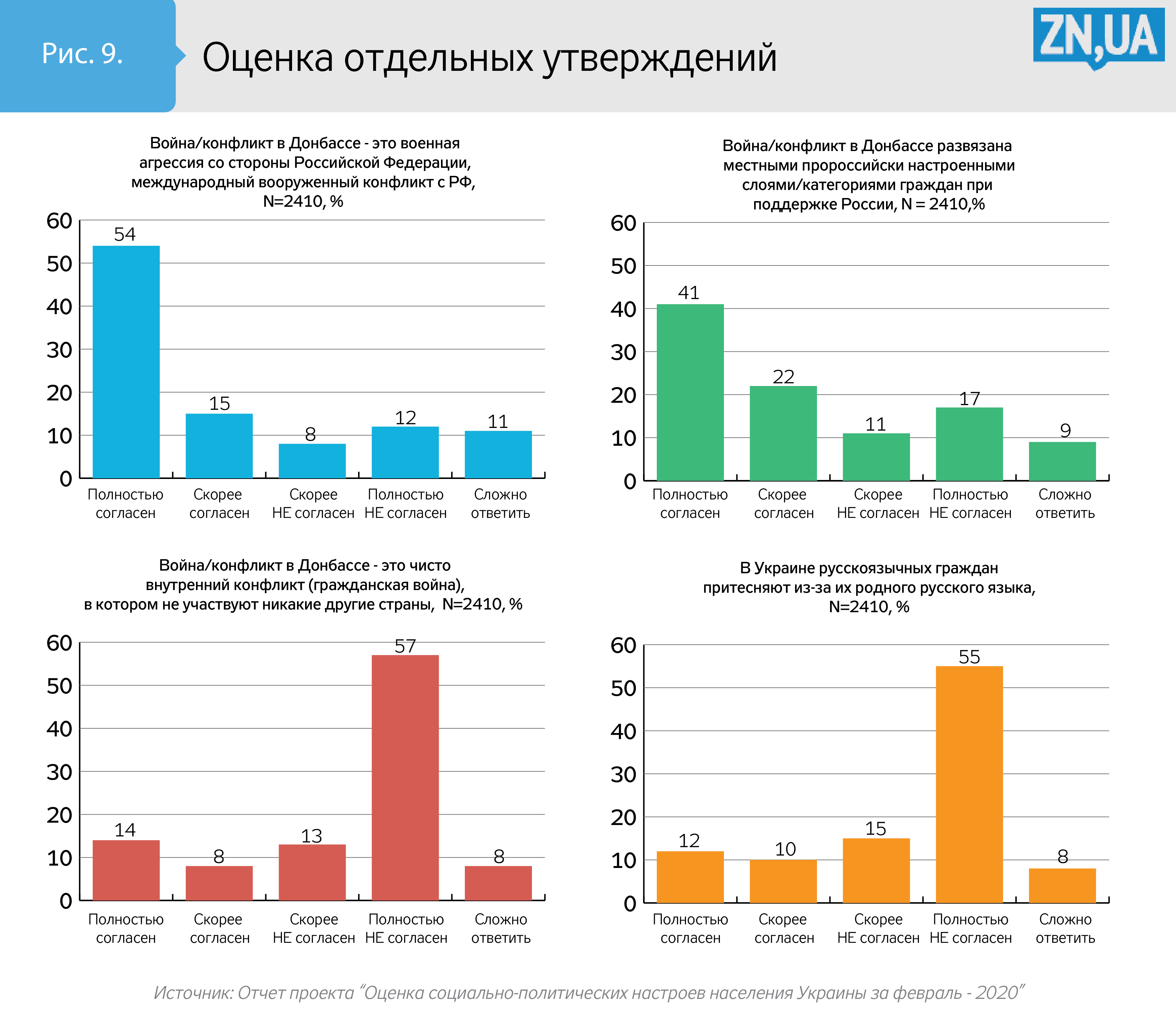 Дослідження "Оцінка соціально-політичних настроїв населення України - лютий 2020" підтверджує суперечливість переконань громадян України щодо Донбасу.