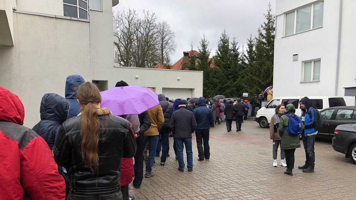 Так, у польській Варшаві черга почала вишикуватися вранці 31 березня й вийшла далеко за межі посольства, люди вишикувалися на кількадесят метрів уздовж тротуару.