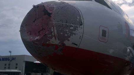 Майже відразу після вильоту з аеропорту авіалайнер, який прямував на Кіпр, потрапив у грозу з градом, який пошкодив носову частину судна і скло в кабіні пілота. За словами командира екіпажу, інцидент стався на висоті 4000 футів (приблизно 1200 метрів), після чого було прийнято рішення про посадку.