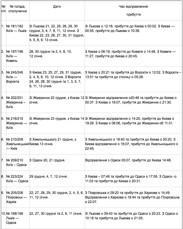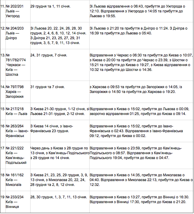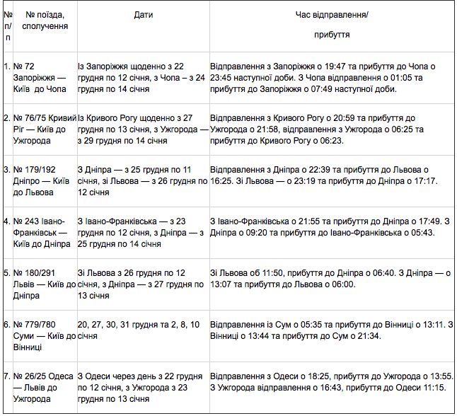 Крім цього, у святкові дати продовжено маршрути поїздів: