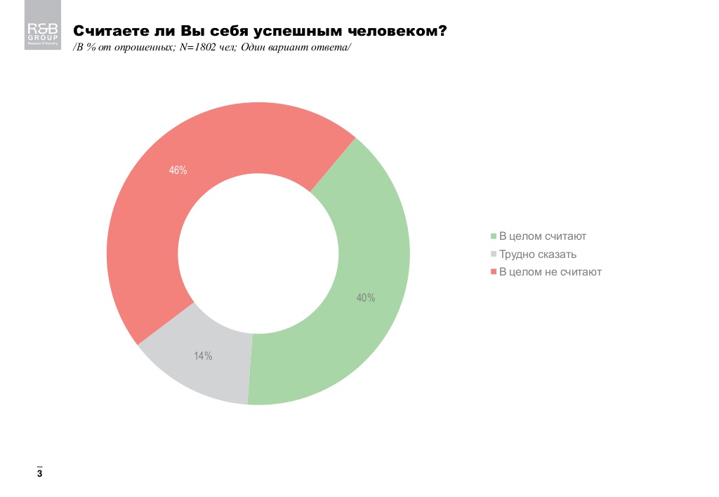 Проте ще більше респондентів (46%) відносити себе до успішним людям не схильні. Ще 14% опитаних ще не визначилися з тим, наскільки успішна прожите ними життя.