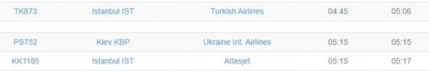 До тексту надані скріншоти, на одному з них видно, що літак "Турецьких авіаліній" рейсу TK873 на Стамбул повинен був вилетіти о 04.45, вилетів о 05.06, літак рейсу МАУ PS752 на Київ повинен був вилетіти о 05.15, тоді ж і вилетів. Літак Atlasjet рейсу KK1185, який також повинен був вилетіти о 05.15, вилетів о 05.17.