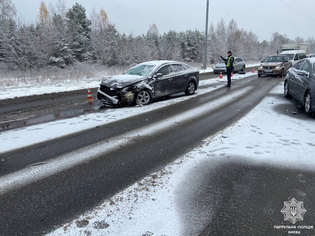 Національна поліція уже повідомила про перші ДТП через снігопад. Так, на Броварському проспекті на в'їзді в місто Київ рух транспорту ускладнений саме через дорожньо-транспортну пригоду.