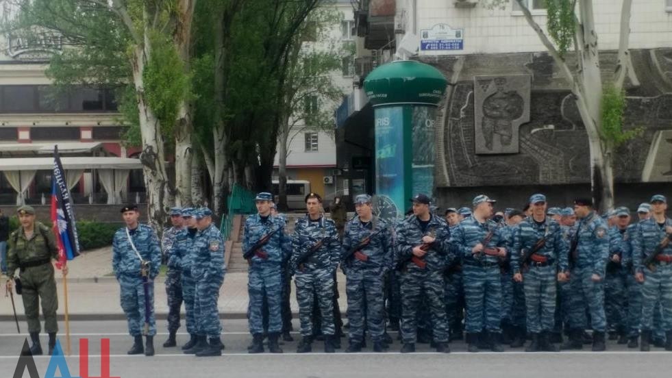 В окупованому Донецьку в суботу, 2 травня, пройшла репетиція "параду 9 травня", в якій взяли участь кілька сотень бойовиків ДНР.