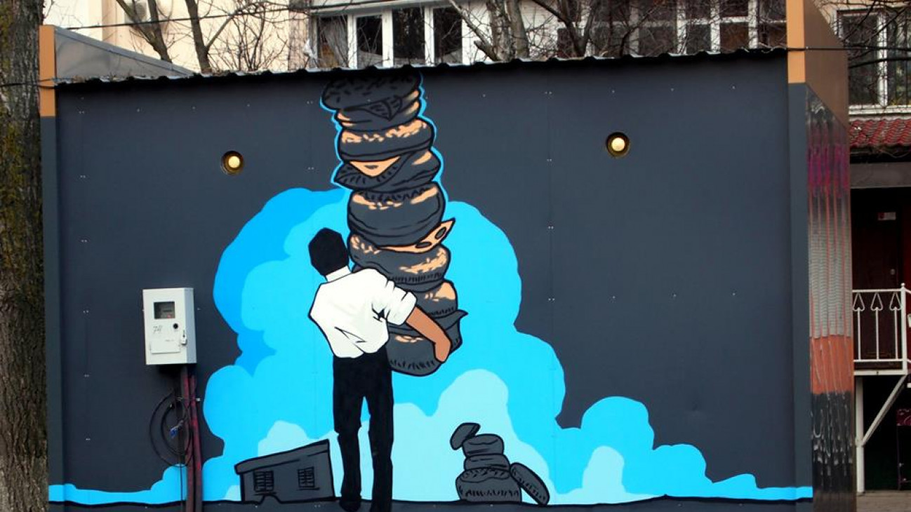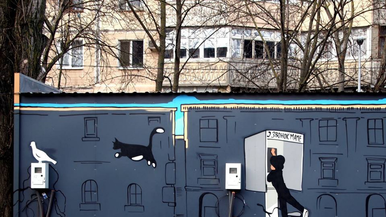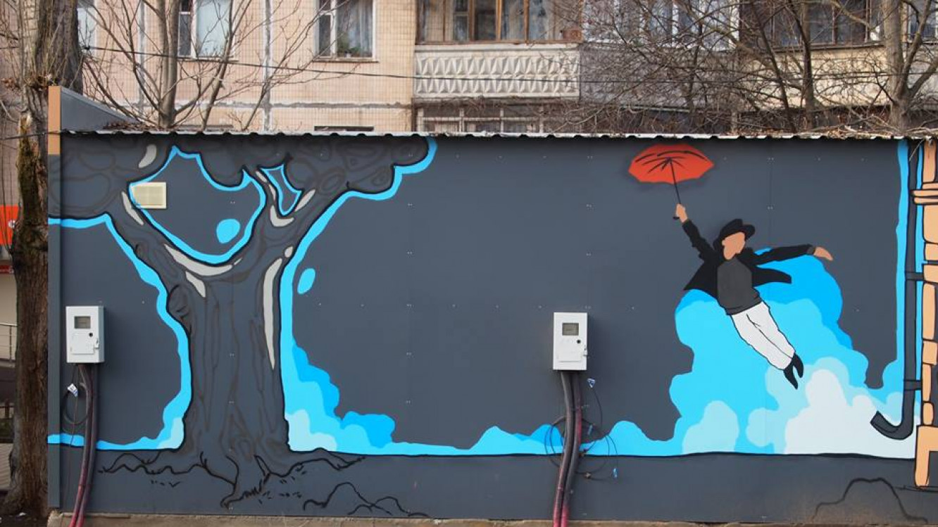Раніше будівлю поліції Печерського району Києва прикрасив мурал "Піднятися з бруду". Автори стверджують, що це перший в світі мурал, який дозволили намалювати на поліцейській ділянці.