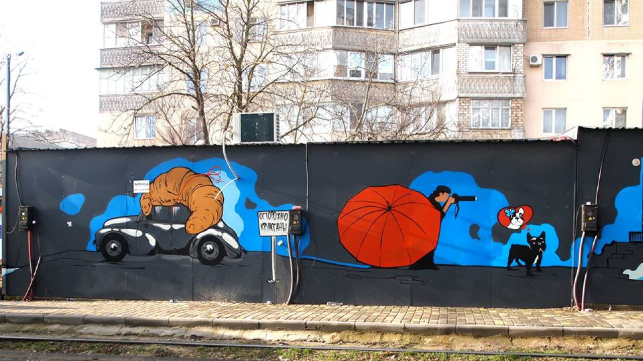 Нова міська пам'ятка з'явилася в Одесі – там задню сторону довгого торгового ряду на проспекті Добровольського, виходить на трамвайні колії, перетворили в барвистий арт-об'єкт. Кіосками в якості полотна художник скористався Андрій Бака.