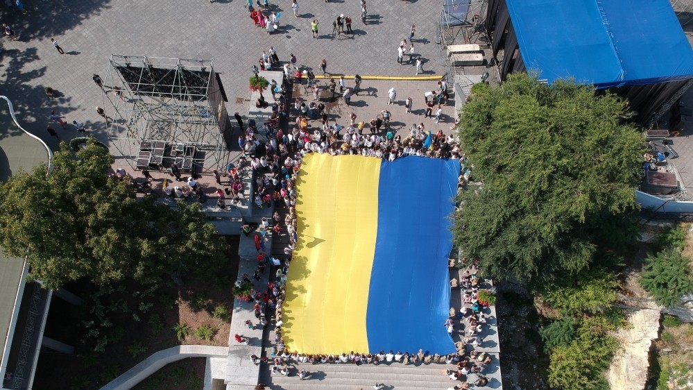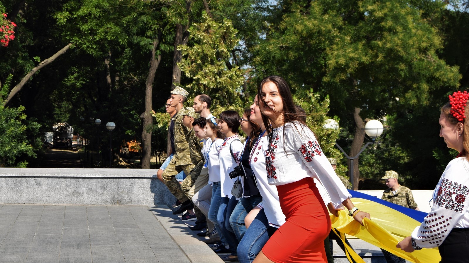 На Приморському бульварі Одеси стартував дев'ятий Вишиванковий фестиваль. За традицією, його учасники пронесли Потьомкінськими сходами величезний державний прапор, довжина якого точно відповідає віку нашої держави з дня проголошення незалежності. Учасники акції підняли по сходах 26-метровий жовто-блакитний стяг, а нагорі, біля пам'ятника Дюку, виконали державний гімн.