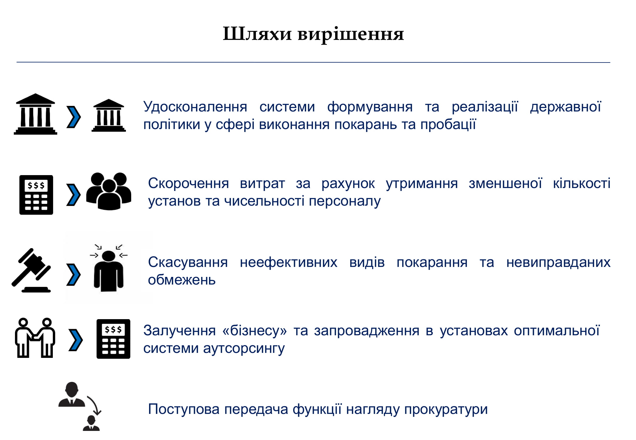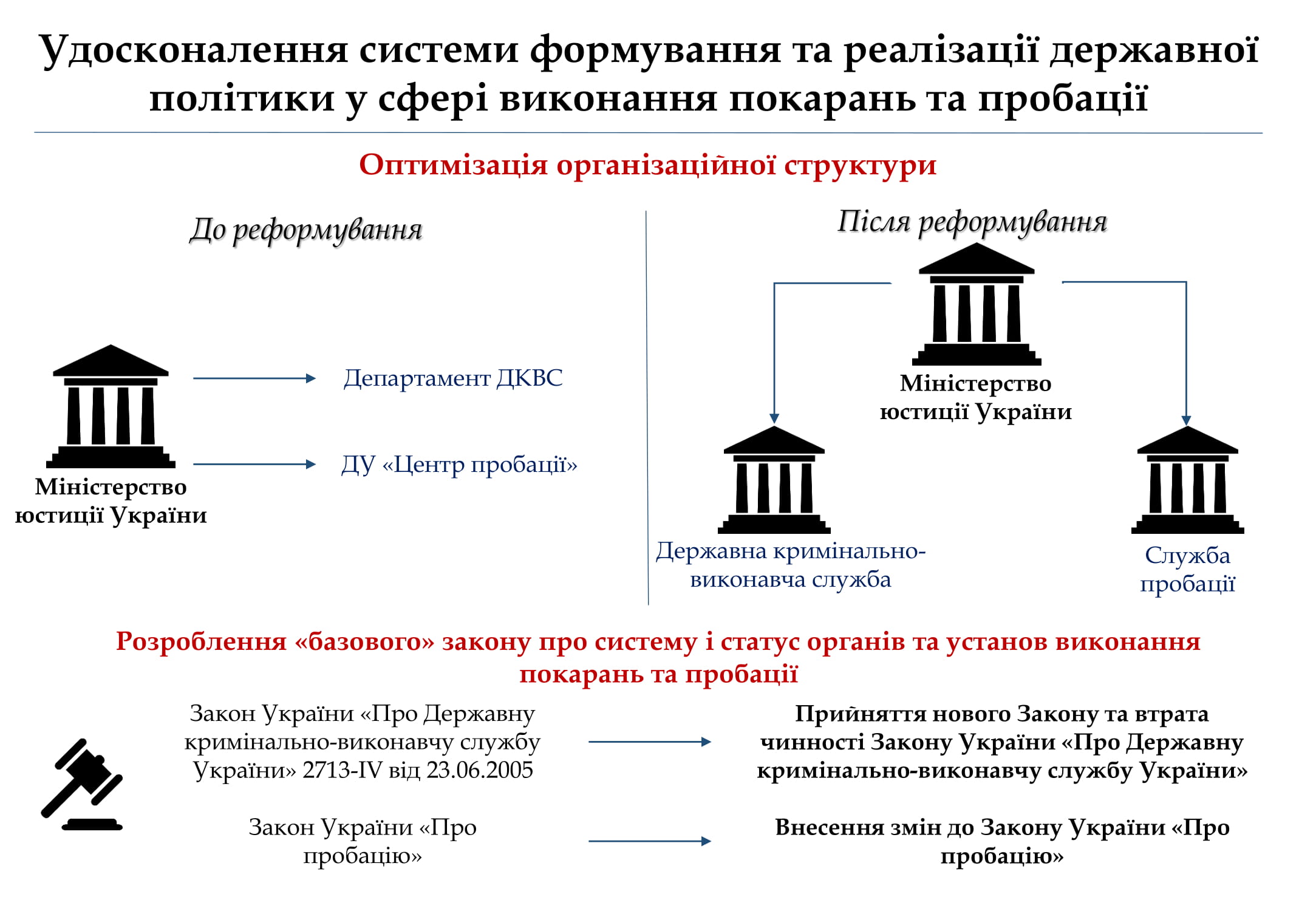 Офіс генпрокурора надіслав Міністерству юстиції пропозиції щодо основних засад Концепції реформування пенітенціарної системи: від удосконалення системи формування та реалізації державної політики у сфері виконання покарань та пробації до поступової передачі функції нагляду прокуратури до пенітенціарних інспекцій.