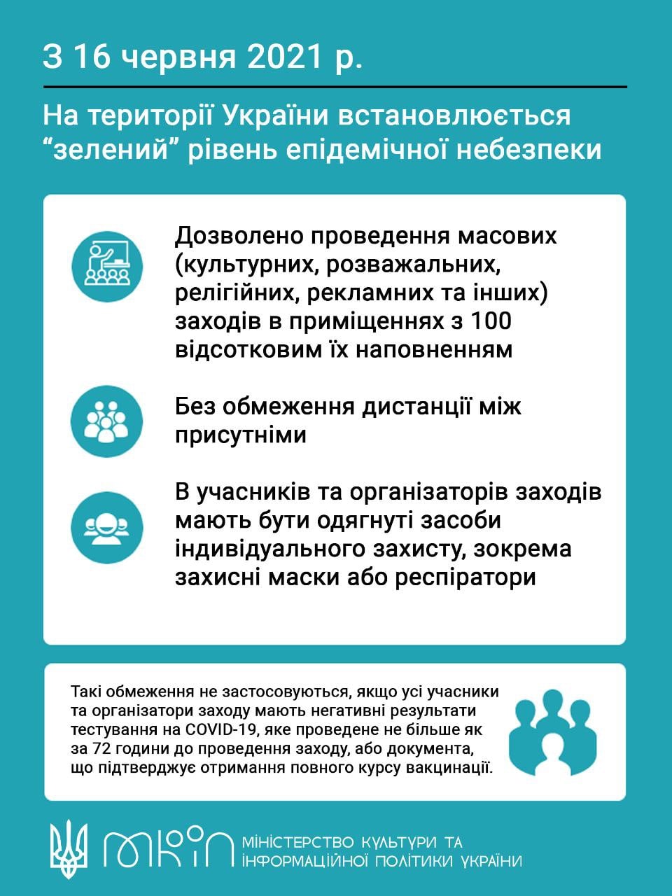 З 16 червня вся територія України знаходиться в оновленій "зеленій зоні".