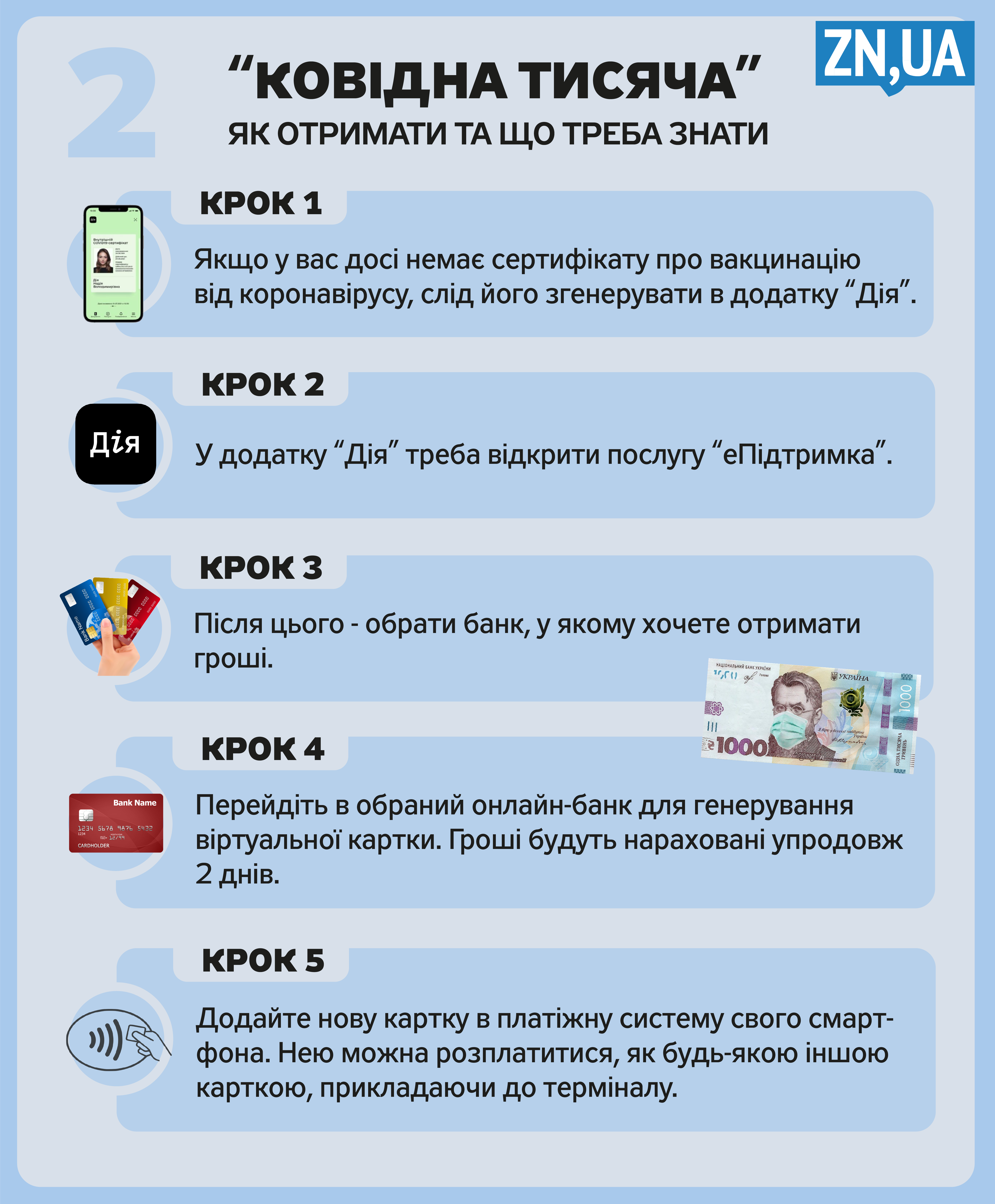 В Україні з 19 грудня офіційно запущено проєкт "еПідтримка" в застосунку "Дія". До 29 грудня включно триває прийом заявок на отрмання тисячі гривень. Її зможуть отрмати повністю вакциновані від COVID-19 українці, інформує Мінцифри.