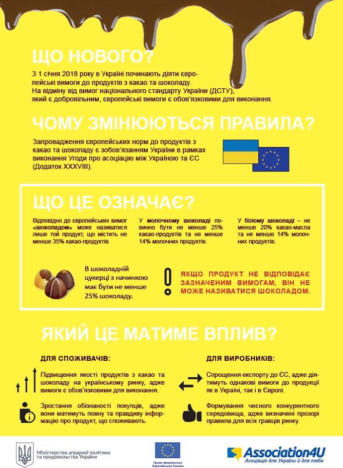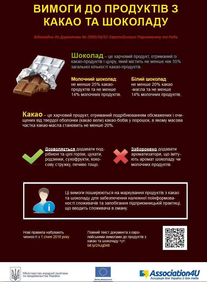 З 1 січня 2018 року в Україні набули чинності європейські вимоги до якості какао і шоколаду.