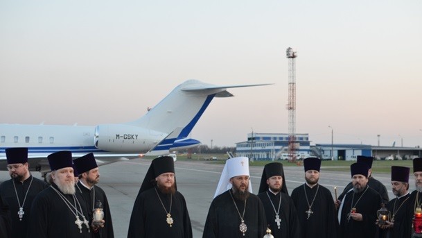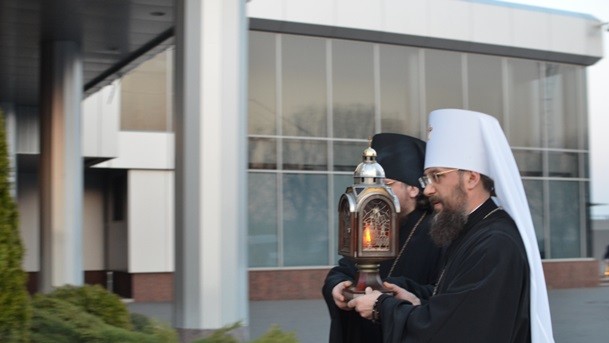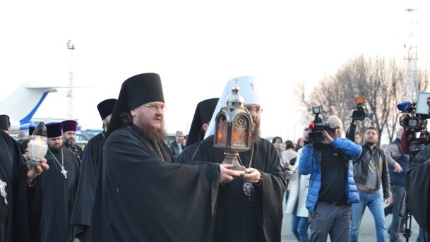 Благодатний вогонь з Єрусалиму прибув у Київ. У столичному аеропорту "Бориспіль" його зустріли священики та віруючі.
