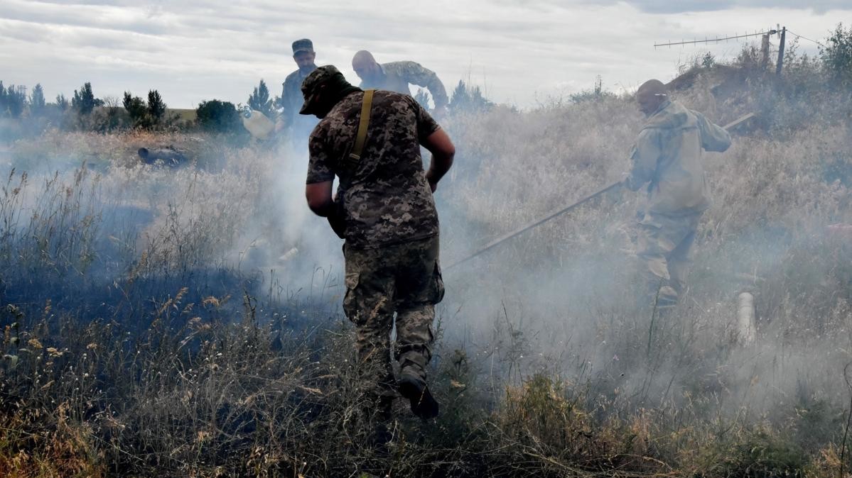 "Місцеві жителі села Бердянське вранці почали гасити пожежу, яка погрожувала їхнім домівкам та посівам. Вигоріла трава, посадки, щоб загасити таку велику пожежу, військовим і рятувальникам ДСНС знадобилося більше восьми годин. Така пожежа погрожувала також населеним пунктах поблизу Бердянського", – розповів він.