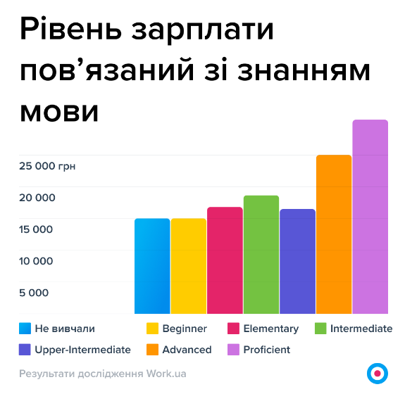 Загалом спостерігається взаємозв’язок між освітою й розміром зарплати, та зарплатнею і знанням мови. Наприклад, продавці-консультанти з вищою освітою отримують вищу зарплату. А в менеджерів з продажу з рівнем англійської Proficient та Advanced найвищі зарплати порівняно з колегами, які не так добре володіють англійською.