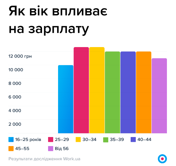 Найвищі зарплати отримують спеціалісти віком від 25 до 34 років, найнижчі – респонденти віком від 16 до 25 років. Чоловіки продовжують отримувати більше за жінок за ту ж саму роботу. Наприклад, професійний менеджер з продажу заробляє 22 тисячі гривень, жінка на цій самій посаді – 18 тисяч.