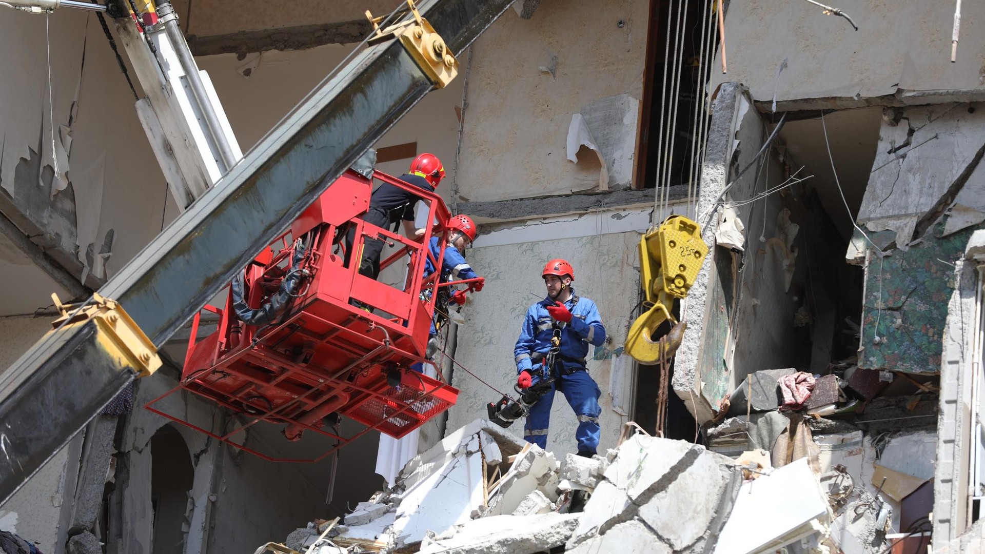 Всередину зруйнованого будинку поки що нікого не пускають, на місці аварії працюють поліцейські, рятувальники та вибухотехніки, поруч розгорнуто оперативний штаб і мобільний центр ДСНС.