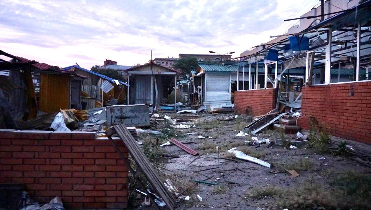 Є руйнація адмінбудівель, магазинів, ринку, складів та житлових будинків.