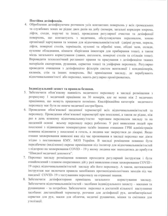 "Вважаю, що це базові вимоги, згідно з якими повинні працювати заклади розміщення та можуть почати таку роботу з 12 травня", - наголосила вона.