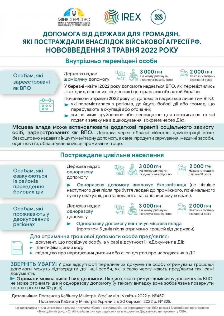 Слід зазначити, що допомога на проживання для цих категорій ВПО надається щомісячно у наступних розмірах: