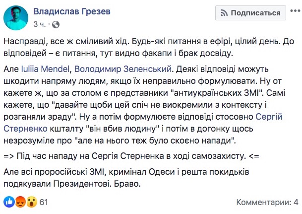 Зазначимо, що Володимир Зеленський заявив, що обрав такий формат спілкування з журналістами, оскільки не хотів зустрічі в офіційному форматі пресконференції. На питання журналістів, чому він не приїхав на велосипеді, Зеленський додав, що це в Києві дуже складно.