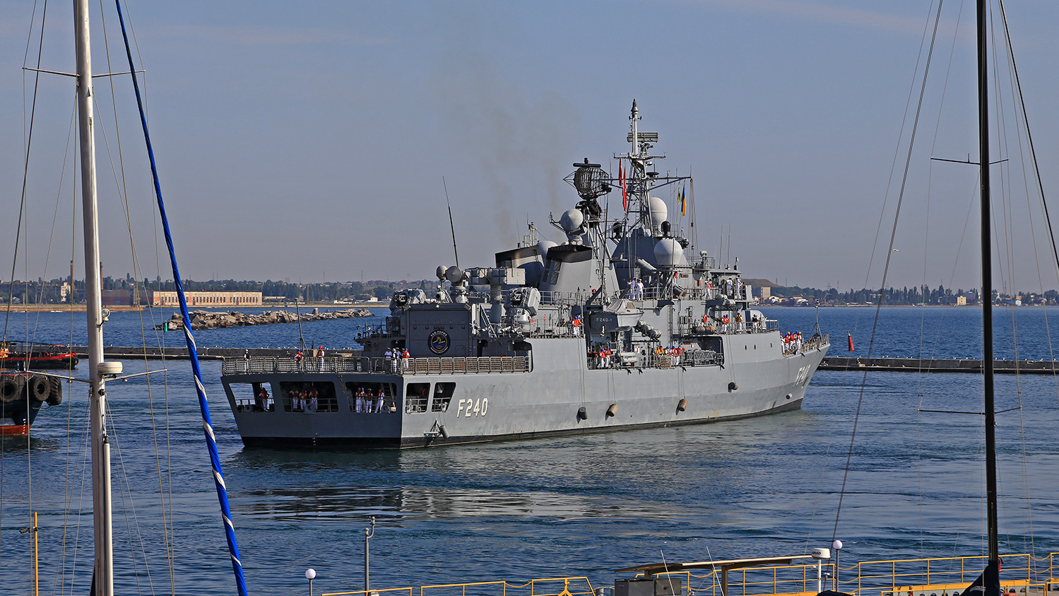 Після "Бадьорого" в порт зайшли турецькі кораблі - фрегат "Явуз" і підводний човен "Їлдирай" - той самий, який нещодавно потопив на навчаннях у Чорному морі списаний танкер. В 9:00 фрегат став біля 18-го причалу морвокзалу, а підводний човен - у понтонного причалу яхт-клубу. "Їлдирай" належить до відомого типу 209, побудованому в Німеччині в 1970-80 роках. Введена до складу ВПС Туреччини в 1981 році, має повну підводну водотоннажність 1200 тонн. Швидкість надводна 11,5 вузлів, підводна 21,5 вузлів. Довжина 62 метри, екіпаж близько 30 осіб.