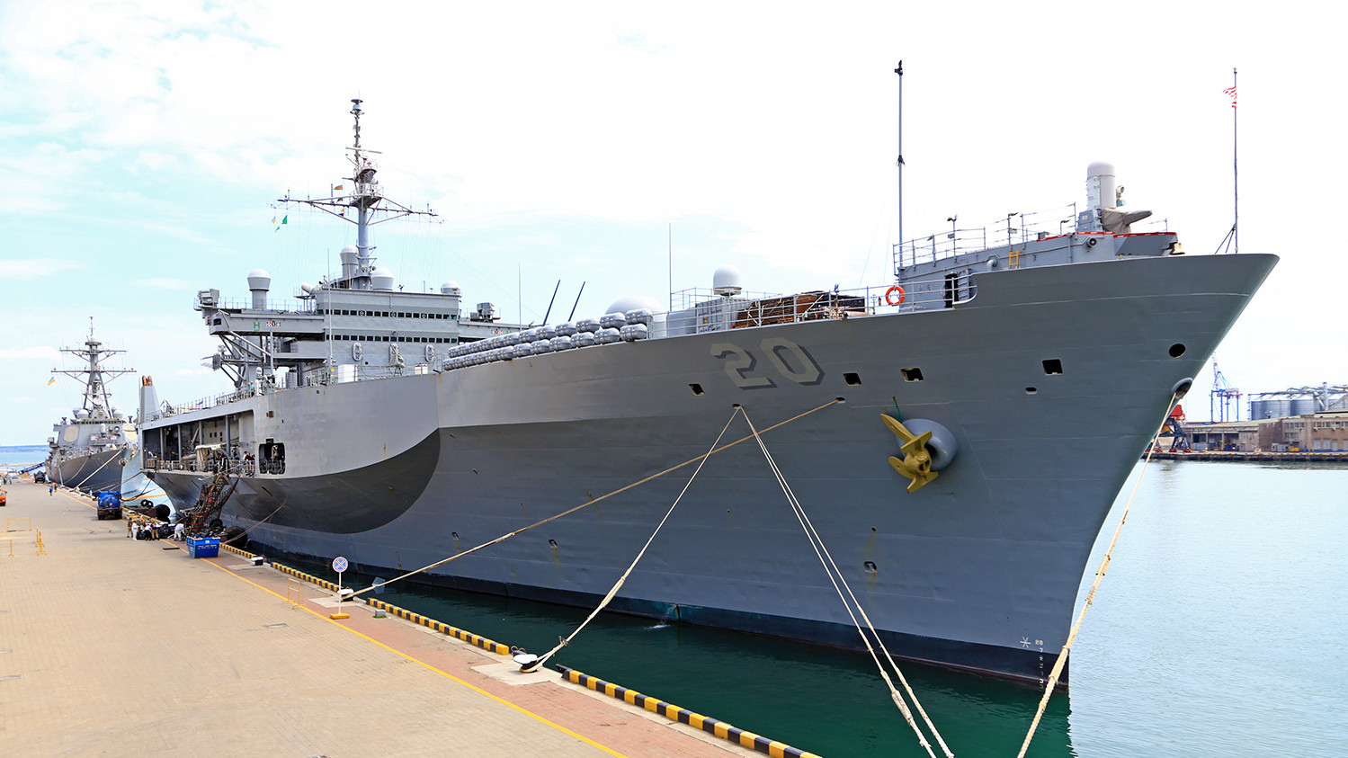 Останнім, о 10:00 прибув корабель управління 6 флоту США Mount Whitney. Він ошвартувався на 15-му причалі морського вокзалу. Це перший візит корабля в український порт. На борту Mount Whitney розміщується морський оперативний штаб навчань , який буде керувати ходом маневрів. Корабель управління вступив у дію в 1971 році. Названий на честь гори Уїтні, найвищої гори хребта Сьєрра-Невада, розташованої в штаті Каліфорнія.