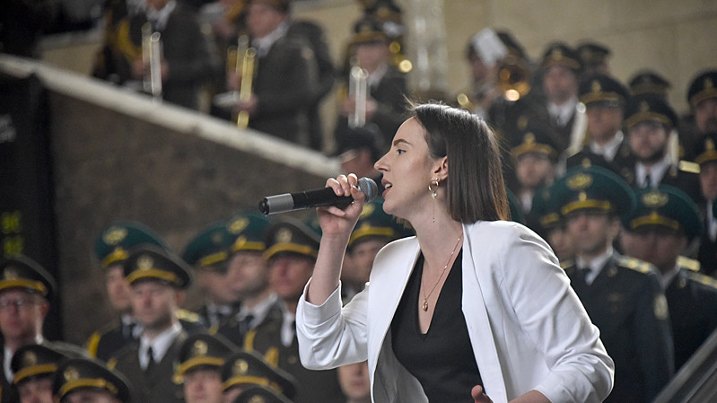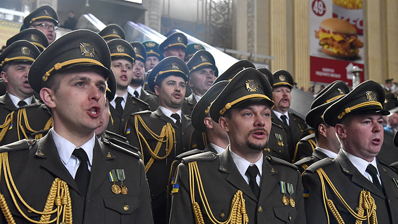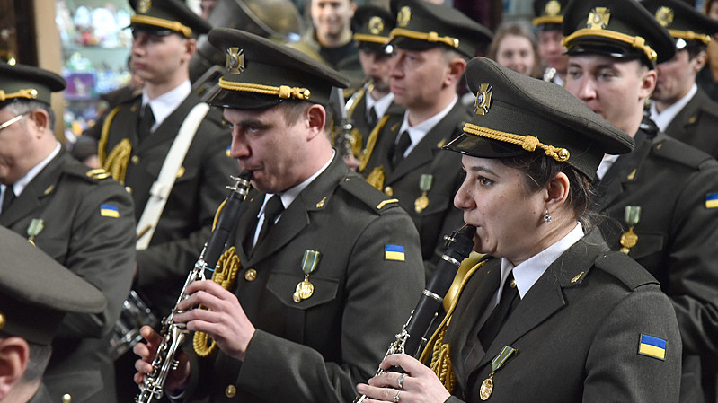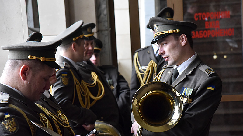 Військові музиканти виконали композиції "Марширують добровольці" і "Там на горі, на Маківці". В ході виступу відбулася прем'єра пісні "Слава Україні".