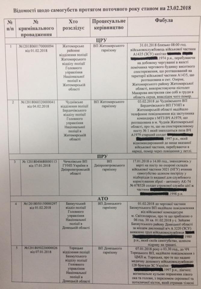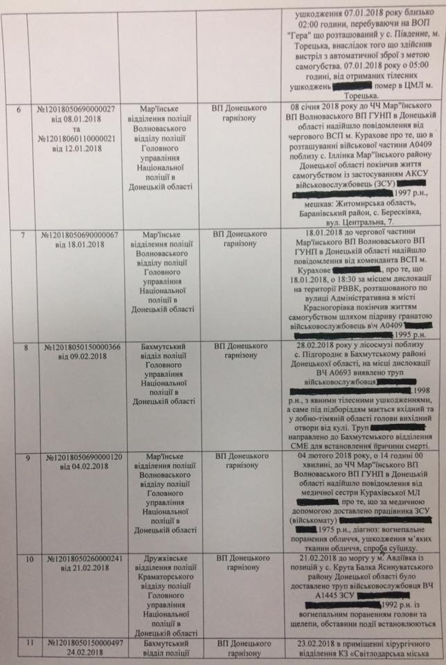 Раніше у ЗМІ з'явилася інформація, що 11 військовослужбовців Збройних сил України за січень тим чи іншим способом вкоротили собі віку. За словам Матіоса, у нас близько десяти тисяч санітарних і безповоротних небойових втрат.