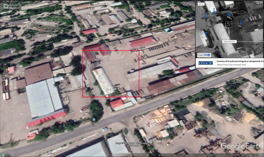 Як наголошується, спираючись на вихідні дані, зазначені у звіті ОБСЄ, волонтери InformNapalm визначили точні координати знімків на місцевості – зробили геолокаційну прив'язку.