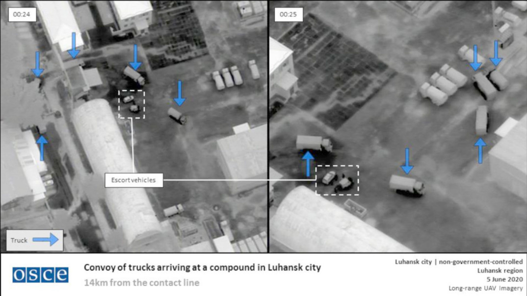 Зокрема, розслідувачі опублікували знімки з безпілотника, що підтверджують текстову частину звіту місії ОБСЄ №134/2020 від 6 червня 2020 року.