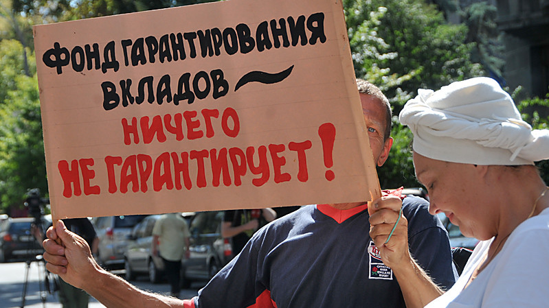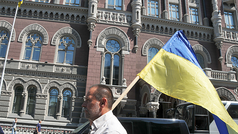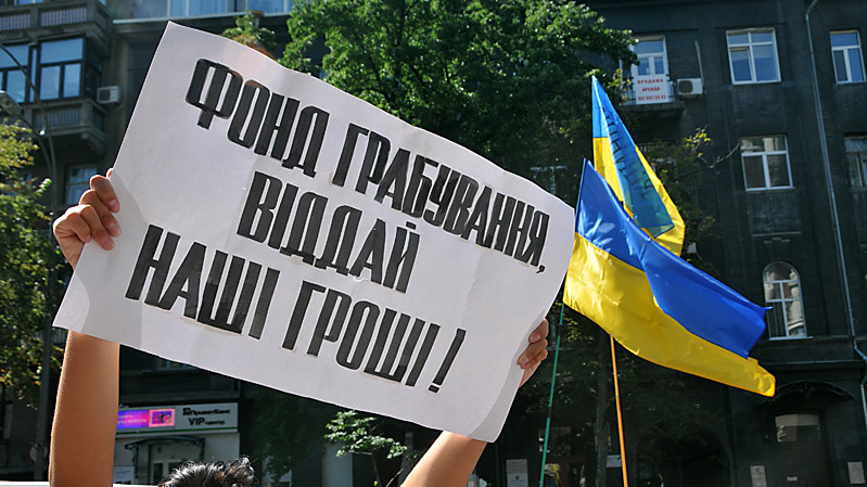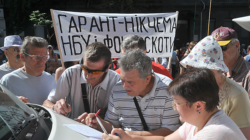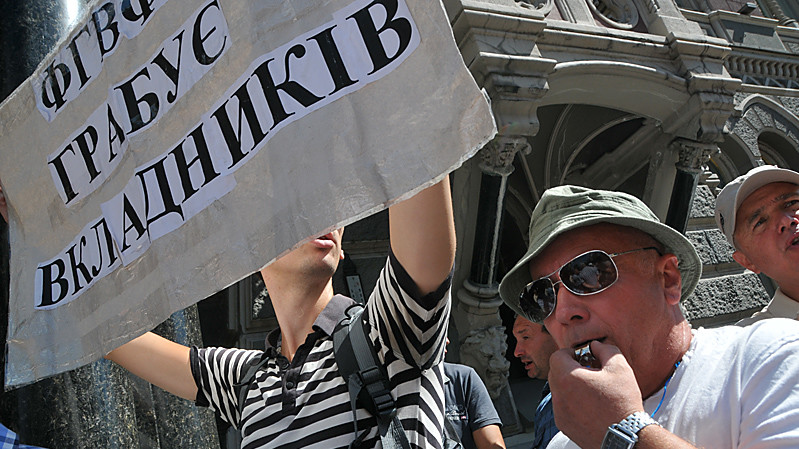 Кілька сотень людей, які називають себе вкладниками збанкрутілого банку "Михайлівський", перекрили рух автотранспорту по вул. Хрещатик у центрі Києва, вимагаючи повернення коштів.
