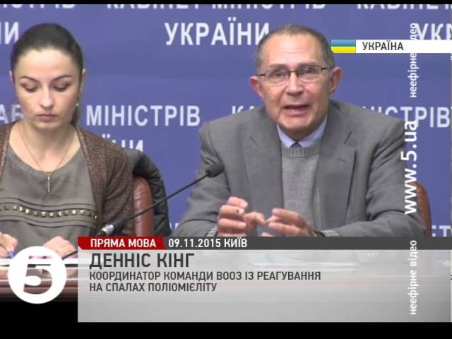 Координатор команди Всесвітньої організації охорони здоров'я (ВООЗ) по реагуванню на спалах поліомієліту Денніс Кінг заявив, що вірус поліомієліту найближчим часом може бути повністю викоренений в Україні.