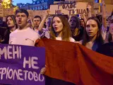 Учасники акції, майже виключно молоді люди. Серед них – ветерани російсько-української війни, які заявляють, що проливали кров не за те, аби у країні, приймалися такі закони.