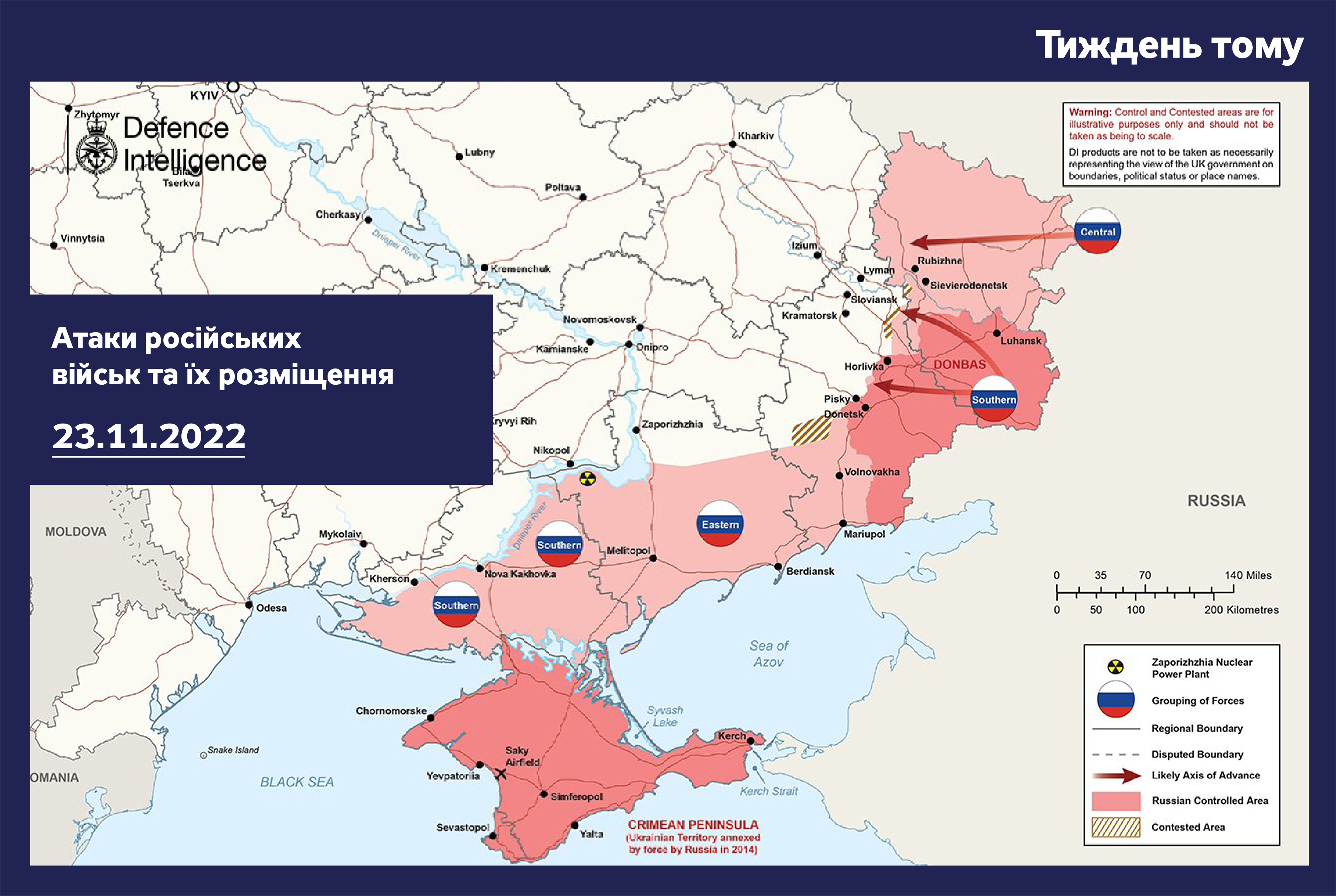 Міністерство оборони Британії опублікувало актуальну карту бойових дій в Україні станом на середу, 30 листопада.