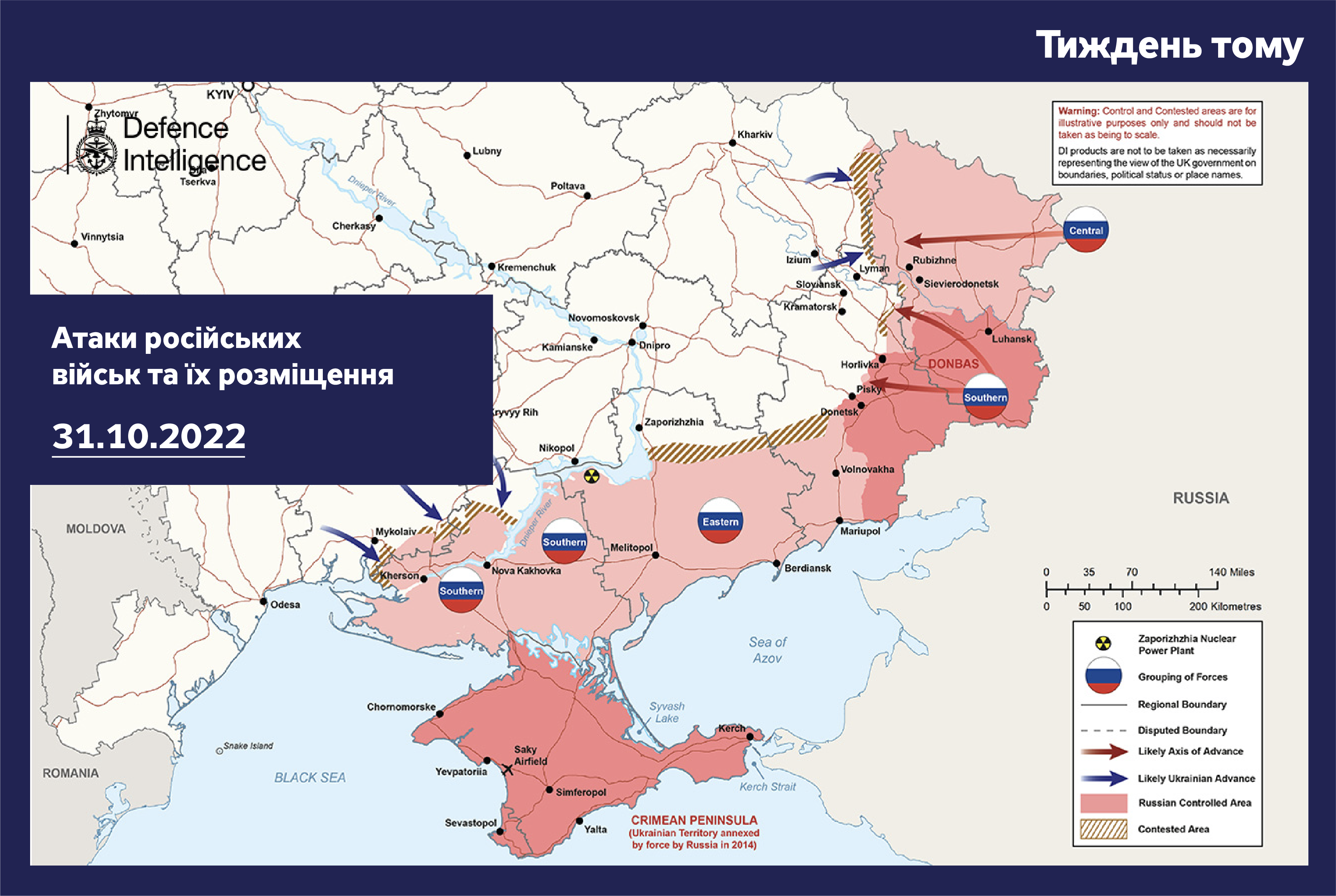Міністерство оборони Британії опублікувало актуальну карту бойових дій в Україні станом на понеділок, 7 листопада.