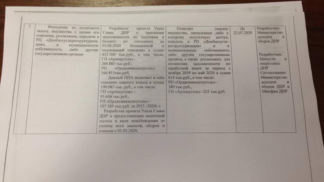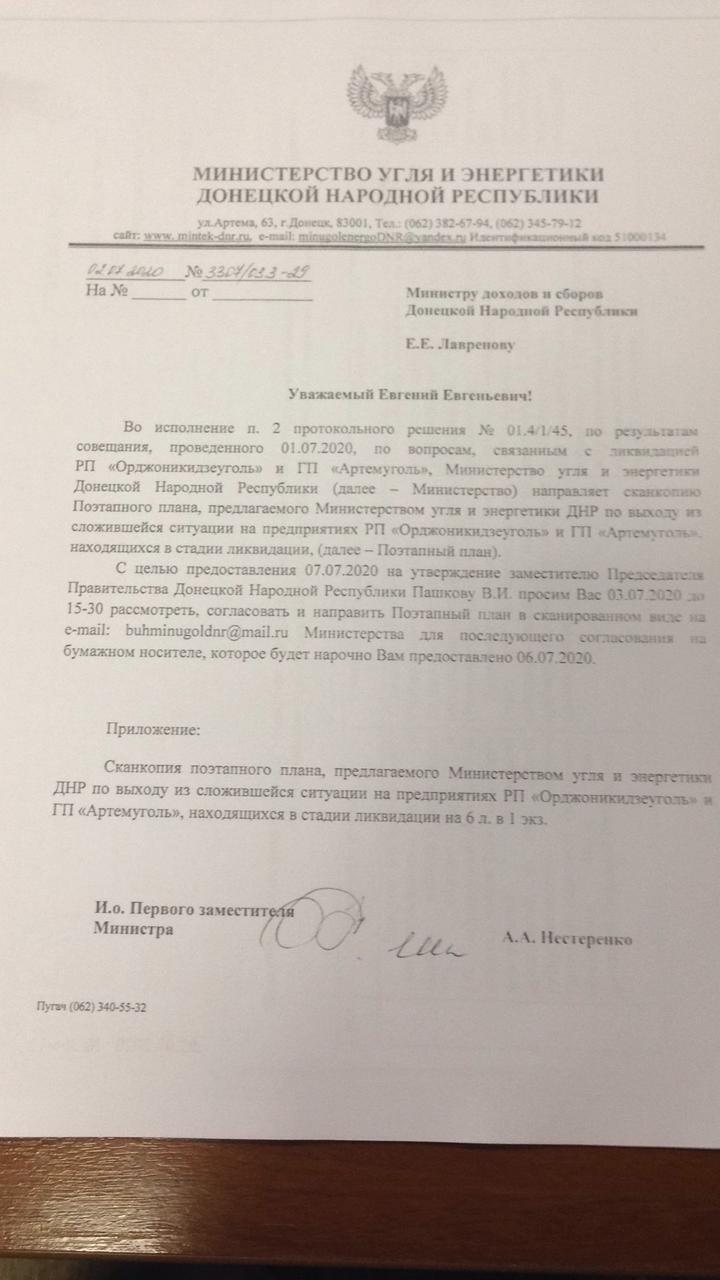 Так зване «міністерство вугілля та енергетики» «ДНР» розробило і в перших числах липня відправив на погодження так званого «міністерства податків і зборів» план ліквідації підприємств «Орджонікідзевугілля» в Єнакієвому і «Артемвугілля» в Горлівці.