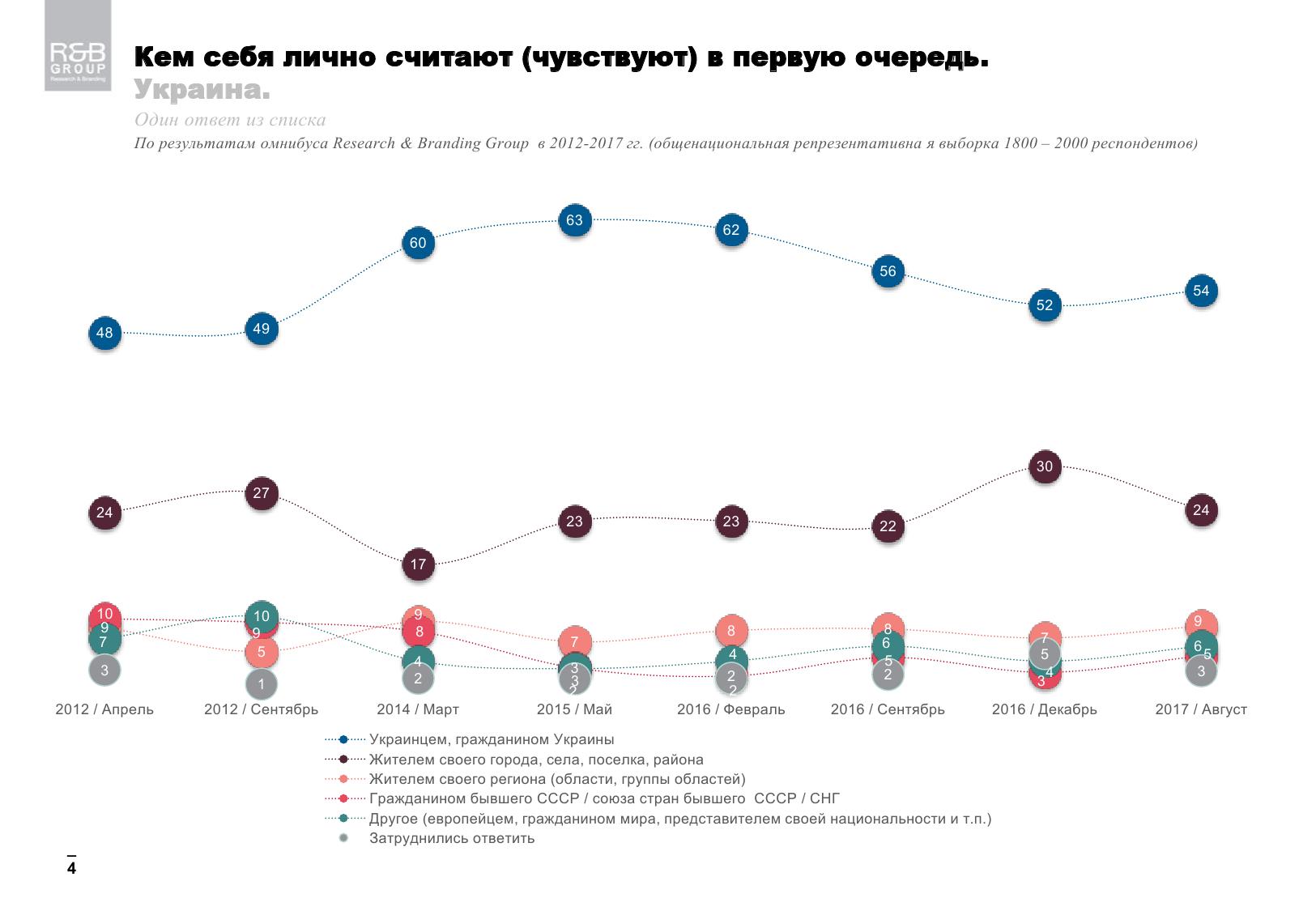 Більшість українців (54%) відчувають себе громадянам України, свідчать дані опитування компанії Research & Branding Group,